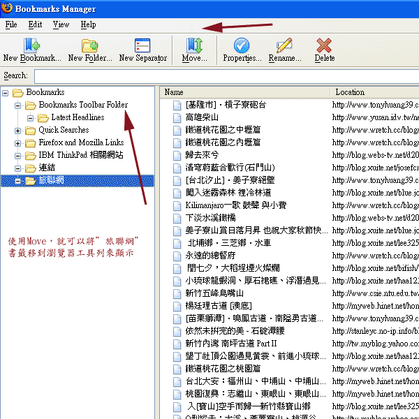 3.也可以將此動態書籤移動瀏覽器工具列就更方便了