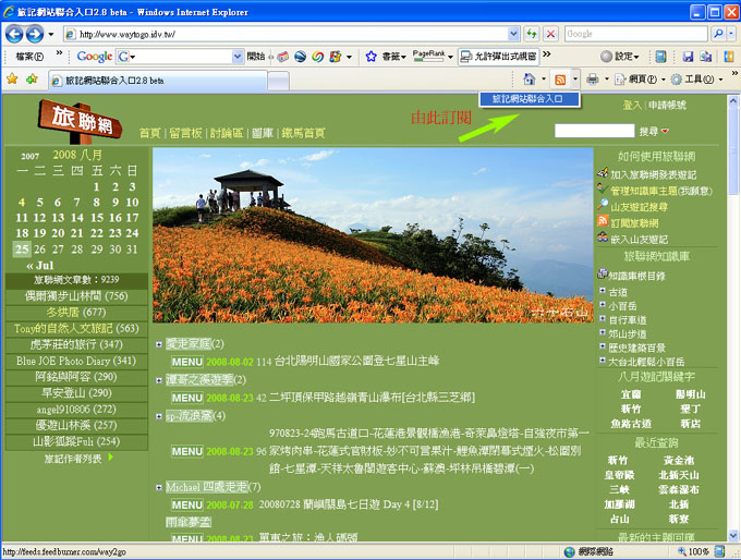 | 文章主題: 訂閱旅聯網最新內容:使用RSS(以Firefox瀏覽器 |