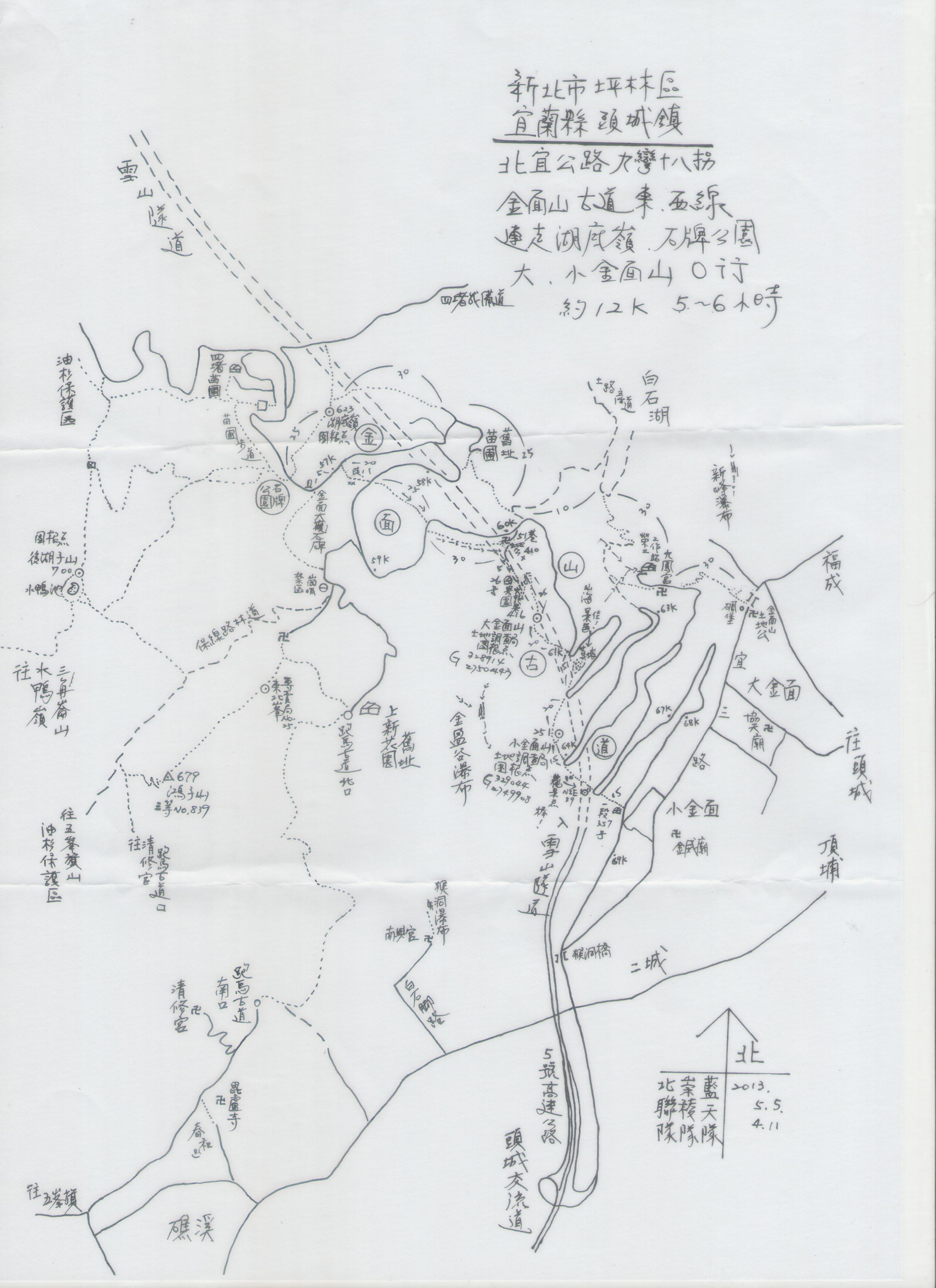 行程說明:金面山古道位於北宜公路石牌至頭城間九彎十八拐的左右兩