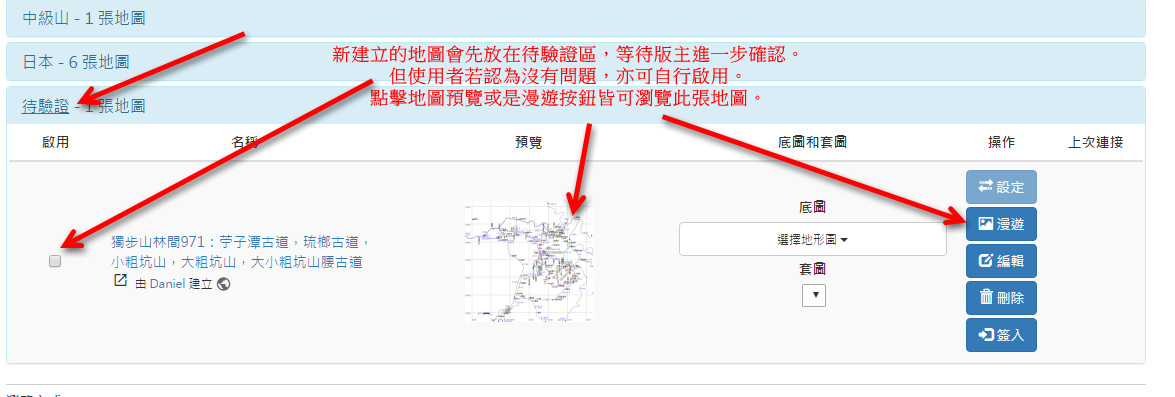 5.地圖建立完成後,可先線上預覽,啟用後即可在Waytogo11中使用,出遊時離線瀏覽。