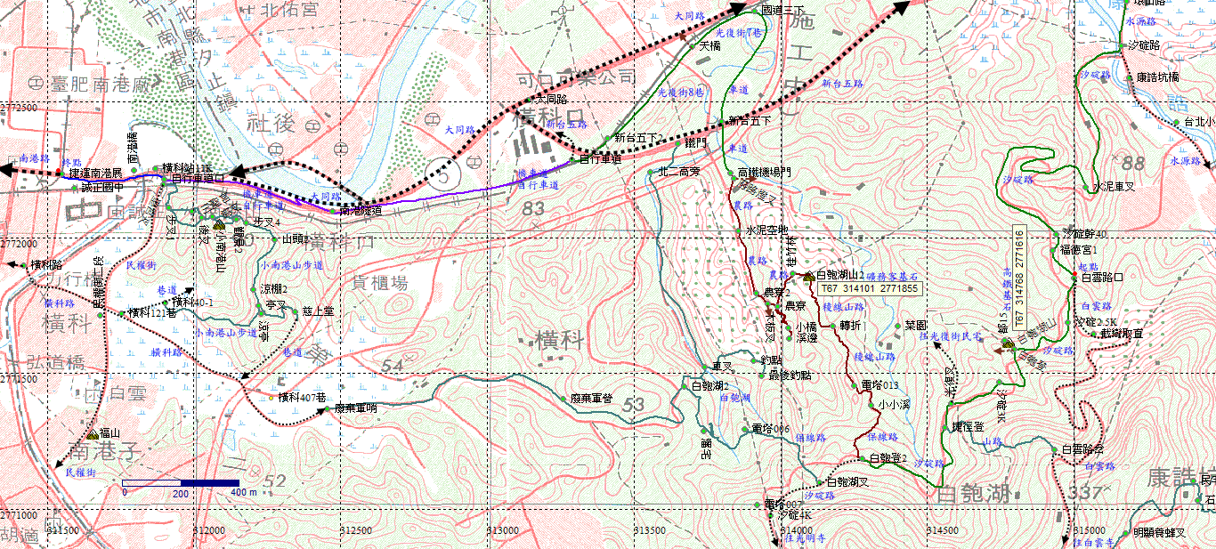 08:48 南港隧道,圍籬外發現有水泥步道通往小南港山方向,可惜圍籬門上鎖無法通行。H16m