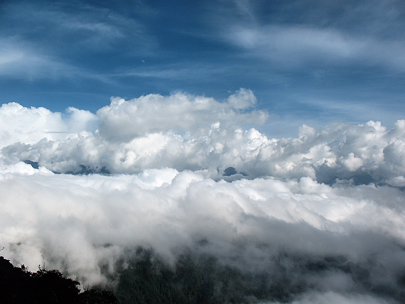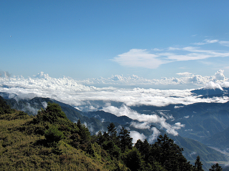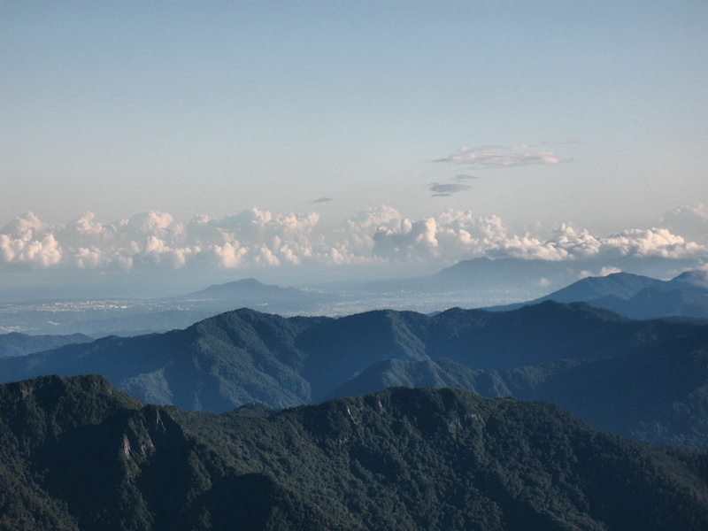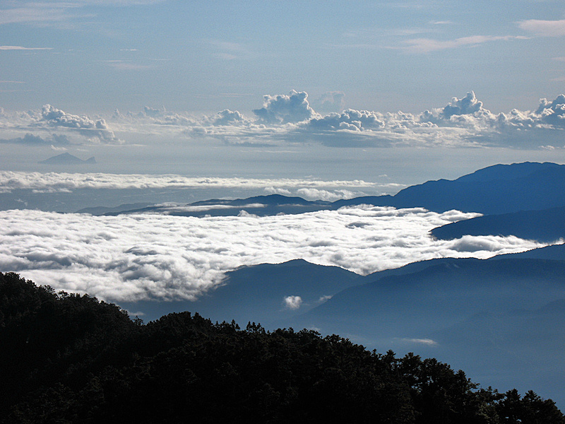上面這張照片拍的很好。是的,沒錯,我說的,就算看倌不認同也不會影響我的。怎麼說呢?因為這是遠眺觀音山和大屯山系耶。遠眺?多遠?在地圖上看,大概快有台灣的一半那麼遠,到底有多遠呢?挪,就是武陵農場往上垂直爬升一千多公尺高度的桃山山屋拍的啦。